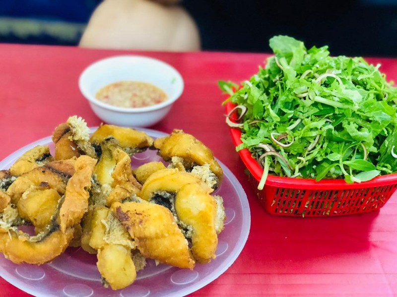 Tại một quán bún cá trên phố Nguyễn Thái Học, khách hàng vẫn ùn ùn tìm đến. Mặc dù không phải xếp hàng dài tràn ra đường như mọi ngày nhưng lượng khách đến cửa hàng vẫn khá đông.