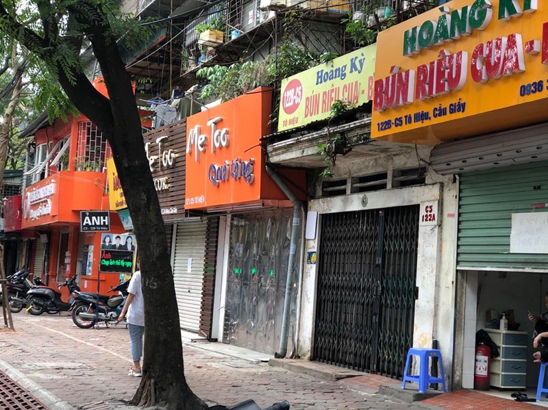 Cả tuyến phố các hàng quán đã "cửa đóng then cài" |