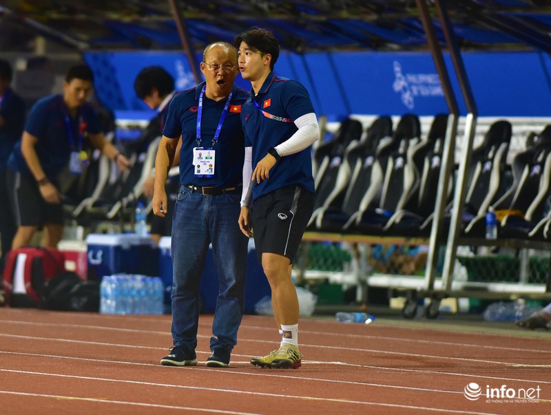 Chơi với đối thủ được đánh giá thấp hơn, nhưng lại chơi rất thô bạo, nên trong suốt trận đấu, HLV Park Hang Seo thường xuyên trao đổi với HLV thể lựcPark Sung Gyun để có sự thay đổi người cần thiết, giữ sức cho cầu thủ để có thể tham gia trận cuối cùng. |