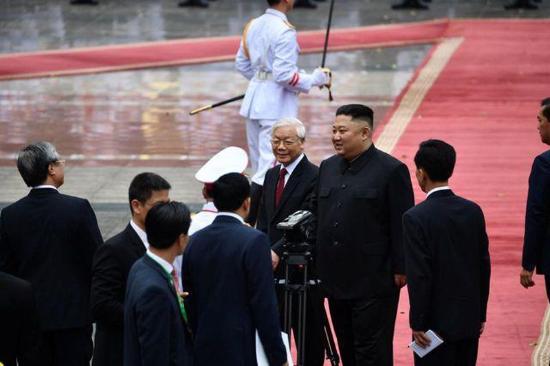 Chiều 1/3, Lễ đón chính thức Chủ tịch Đảng Lao động Triều Tiên, Chủ tịch Ủy ban Quốc vụ nước Cộng hòa dân chủ nhân dân Triều Tiên Kim Jong-un được tổ chức trọng thể tại Phủ Chủ tịch. Sau lễ đón lãnh đạo hai nước Việt Nam - Triều Tiên đã tiến hành hội đàm.