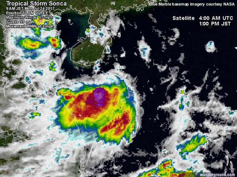 Bão SONCAhiện đang nằm ở trên quần đảo Hoàng Sa. |