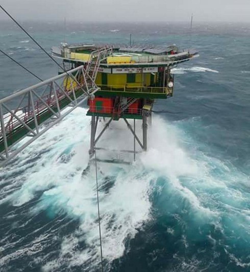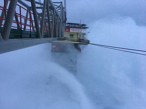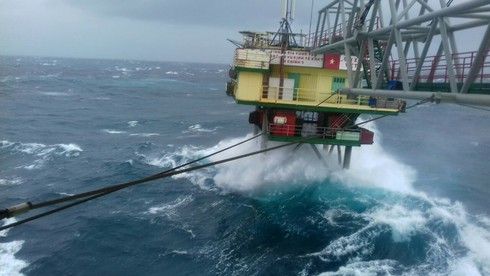 Nhà giàn "rung bần bật" trước sóng gió. |