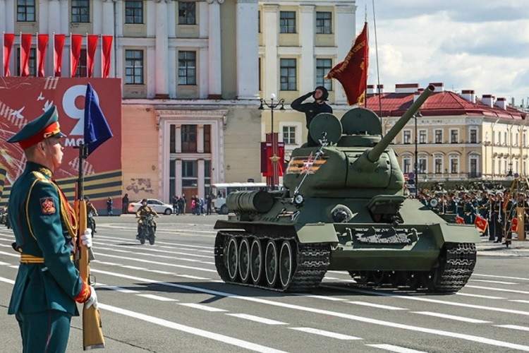 Theo những bức ảnh được truyền thông Nga công bố về quá trình tập dượt cho lễ duyệt binh, sự kiện Ngày Chiến thắng năm nay ngoài vô số trang thiết bị quân sự hiện đại của Nga vẫn có vài vũ khí từng được quân đội Liên Xô sử dụng trong Thế chiến II như xe tăng T-34, cỗ chiến tăng từng đương đầu với nhiều loại tăng-thiết giáp mạnh mẽ của Đức trong thập niên 1940.