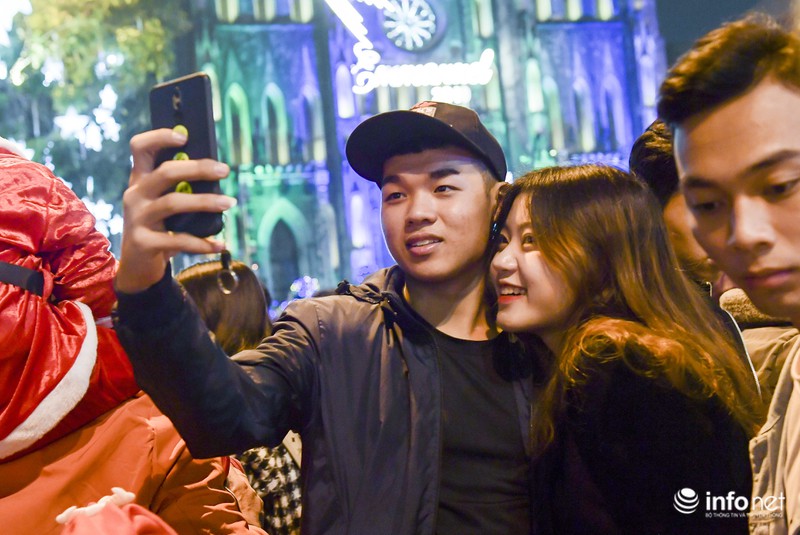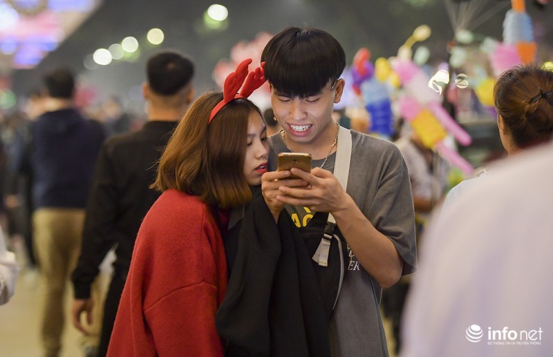 Rất nhiều cặp đôi yêu nhau còn mặc áo đôi cực đẹp mắt và tất nhiên là họ không quên chụp những tấm hình thật đẹp để lưu giữ lại những khoảnh khắc ngọt ngào cho một đêm Giáng sinh ấm áp. |