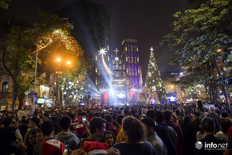 Đêm 24/12, hàng nghìn người đổ về các Nhà thờ, các tụ điểm văn hóa ở Hà Nội như: Phố đi bộ hồ Gươm, phố Nhà Thờ, Nhà Chung, Lý Thái Tổ, Quảng trường Đông Kinh Nghĩa Thục... để đón mừng Noel. |
