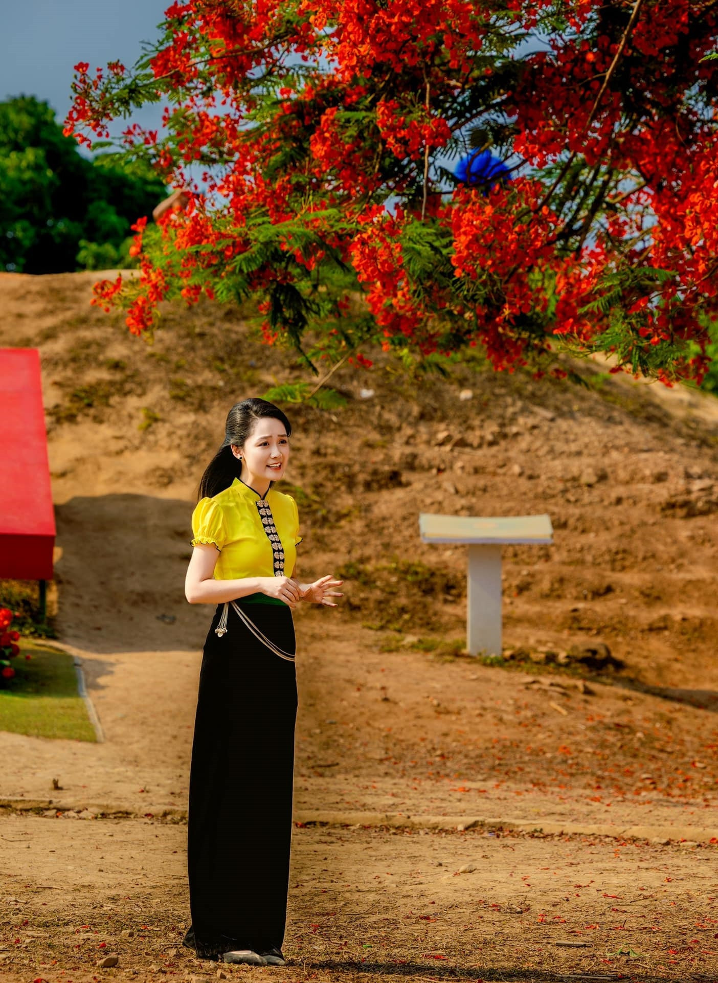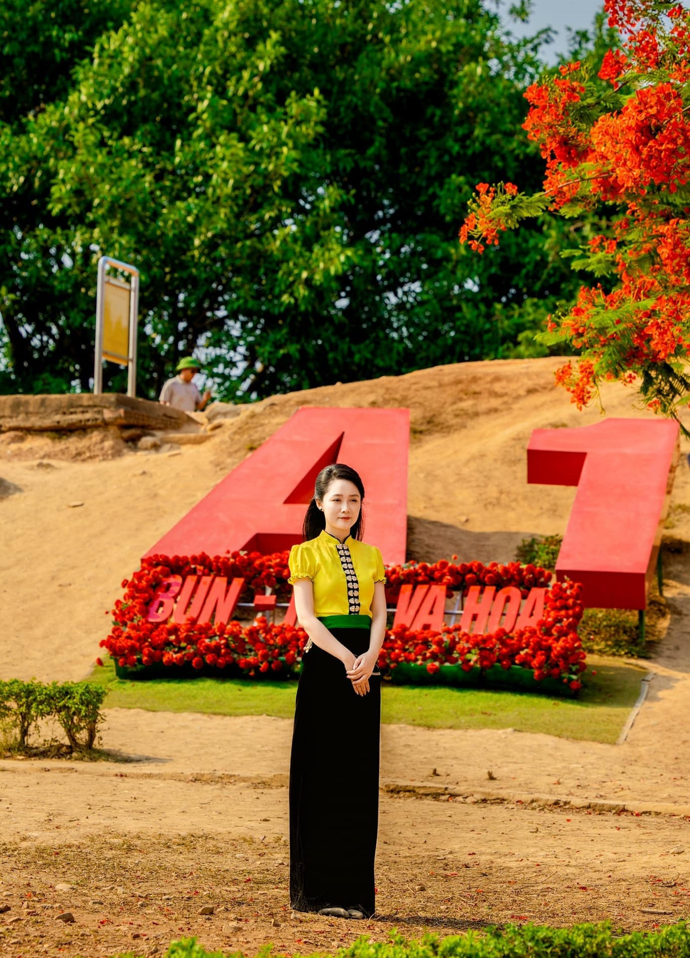 Có mặt tại Điện Biên dịp kỷ niệm 70 năm Chiến thắng Điện Biên Phủ, BTV Thu Hà coi đó là niềm vinh hạnh lớn. Cô gây ấn tượng khi mặc bộ trang phục truyền thống của dân tộc Thái.