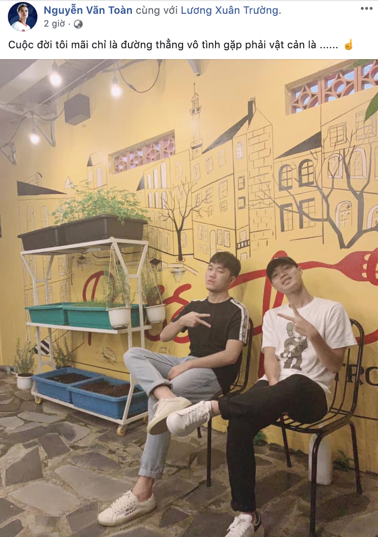 Trước đó, tối cùng ngày, Văn Toàn đăng tấm ảnh chụp cùng Xuân Trường lên Facebook cá nhân với lời cảm thán đầy mùi "cà khịa" rằng cuộc đời anh mãi chỉ là đường thẳng nhưng vô tình gặp phải vật cản là Xuân Trường. Status khiến dân tình rủ nhau vào bình luận về độ "láo" của cậu em Văn Toàn và cho rằng Toàn K-pop sẽ lại "cơ cực" vì bị Xuân Trường đánh mà thôi.