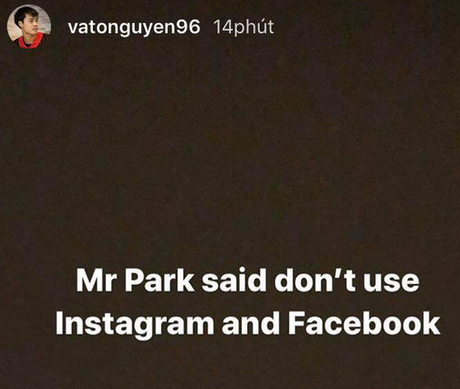 Trên Instagram cá nhân, tiền đạo Nguyễn Văn Toàn vừa cập nhật một dòng trạng thái ngắn gọn rằng: "Mr Park said don't use Instagram and Facebook" (có nghĩa: Thầy Park đã nói rằng không được sử dụng Instagram và Facebook nữa).