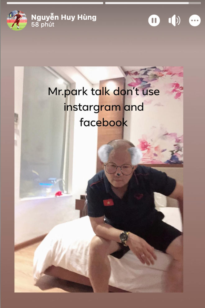 Câu nói như một thông báo cho việc anh chàng sẽ tạm thời ngưng đăng ảnh hay bình luận "cà khịa" khắp nơi do đang nghe lời HLV Park Hang-seo, để dành nhiều sự tập trung cho tuyển Việt Nam. Tiền vệ Huy Hùng cũng đăng ảnh HLV Park trên Facebook cá nhân kèm theo thông báo tương tự Văn Toàn.
