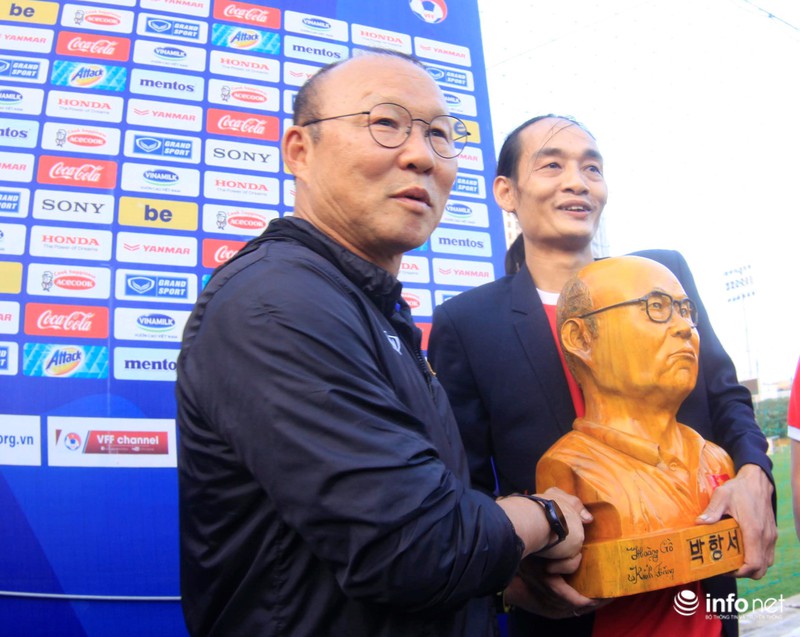 Cụ thể, CĐV này đã dành nhiều tâm huyết để tạc một bức tượng HLV Park Hang Seo bằng gỗ, tặng HLV trưởng ĐT Việt Nam ngay trước thềm cuộc so tài quan trọng với người Thái.