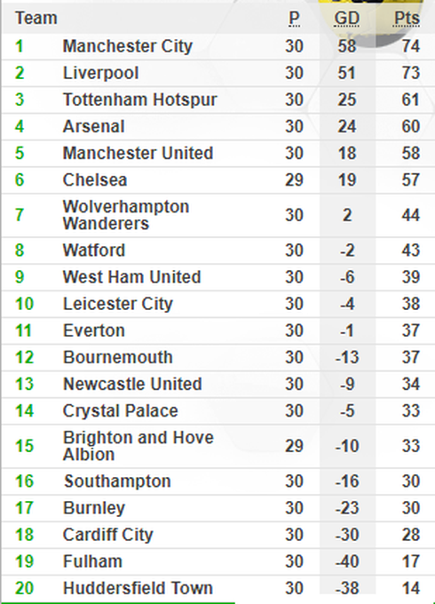 Bảng xếp hạng Premier League |