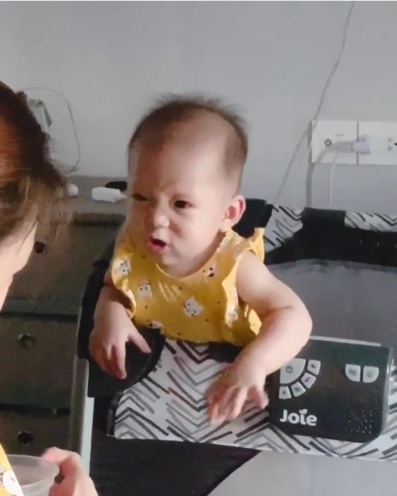 Phía dưới phần bình luận, nghệ sĩ Tiên Tiên phát hiện ra con gái JustaTee khi tỏ vẻ giận dỗi cũng có cái mặt y chang bố “Cái clip nó dọa mẹ Trâm Anh không cho nó ăn, hai cái mặt y chang nhau”. |