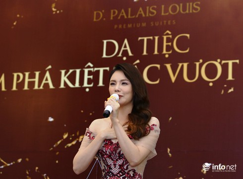 Hồ Quỳnh Hương giới thiệu với khách về các dự án. |