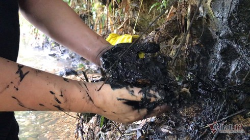 Từ đỉnh dốc (điểm có dầu) đến điểm chảy xuống suối khoảng 150m. Do trời mưa nên có hiện tượng dầu chảy lan xuống suối Trầm và khu vực xung quanh.
