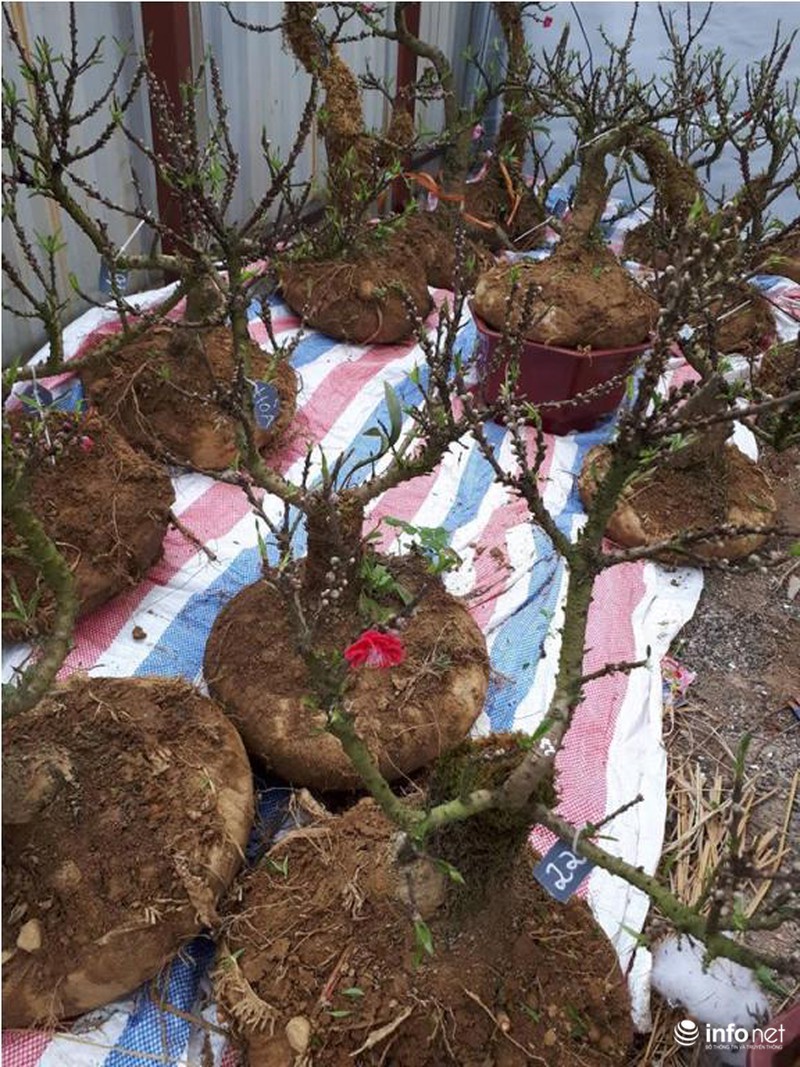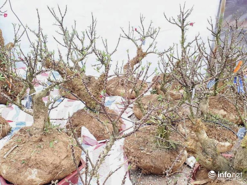 Chủ một quầy hàng vài chục gốc đào Thất Thốn giới thiệu chỉ những người “sành” mới biết đến và chơi loại đào này, cây có dáng tam đa, cao chưa đến 1 mét được "hét" giá 9 triệu đồng. |
