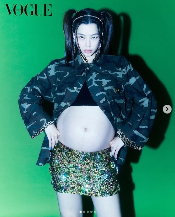 Trong ảnh, Honey Lee tự hào để lộ bụng bầu khi diện áo phông cắt cúp, quần cạp trễ. “Tôi muốn chứng tỏ rằng cơ thể người phụ nữ thật bí ẩn. Đồng thời, tôi muốn thể hiện một cách mới mà mọi người chưa từng thấy trước đây. Tôi bắt đầu từ những khuôn mẫu về vai trò này. Tôi đang nói về việc phụ nữ mang thai có thể mặc những gì họ muốn và cho rằng mình gợi cảm”, cô giải thích.