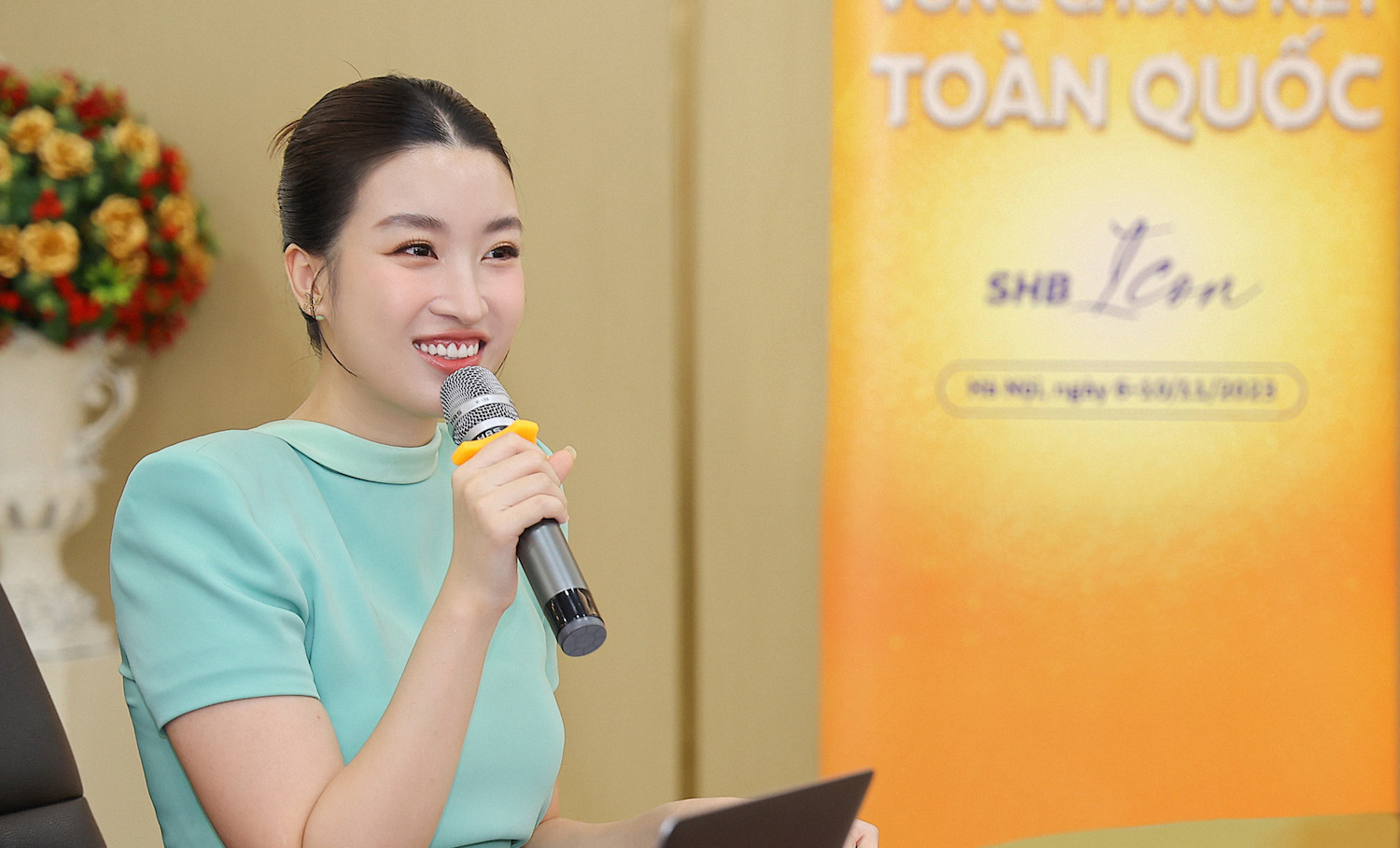 4 tháng sau khi sinh con gái đầu lòng, Đỗ Mỹ Linh - Hoa hậu Việt Nam 2016 tái xuất trong một hoạt động ý nghĩa của một ngân hàng để hướng dẫn các bạn trẻ cách gây ấn tượng với ban giám khảo và ghi điểm ở phần thi ứng xử trong vòng chung kết.