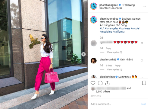 Tháng 8/2019, trên Instagram cá nhân của mình, Phạm Hương vừa thích thú khoe khoảnh khắc đang tự tin sải bước trên đường phố kèm một dòng chia sẻ ngắn bằng tiếng Anh: “Business women after office hour.”