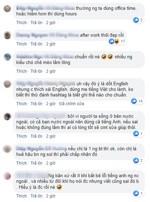 Cụ thể, “business women” không được dùng cho trường hợp một mình như Phạm Hương vì nó có nghĩa là “những nữ doanh nhân”. Ngoài ra, nhiều người chỉ ra “office hour” không phù hợp trong trường hợp này mà nên thay thế bằng “office hours” hoặc một số từ khác.