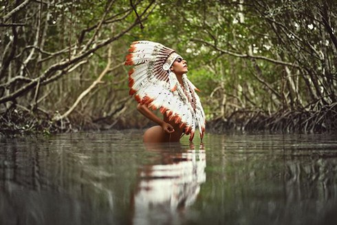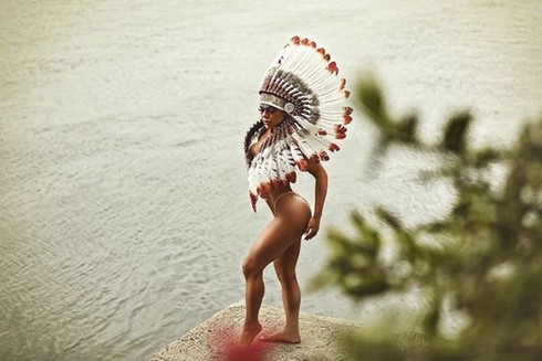 Trong bộ ảnh, Suzy Cortez khoe làn da rám nắng, thân hình săn chắc, khỏe khoắn với nhiều đường cong hút mắt. Người đẹp mặc chiếc quần lót và đội nón lông chim của người thổ dân da đỏ để che ngực trần. Cô cũng make up theo kiểu vẽ mặt đặc trưng của các bộ tộc cổ xưa nơi này.