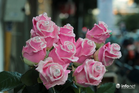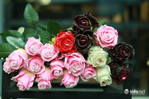 Theo chủ chuỗi cửa hàng này, năm nay lần đầu tiên thị trường có loại hoa hồng Pink diamond, là loại hoa được phủ lớp chocolate màu hồng, cánh hoa còn được phủ thêm lớp nhũ lấp lánh, chính giữa hoa có đính 1 hạt đá pha lê rất sáng. Đây là sản phẩm mới nhất của Hà Lan.