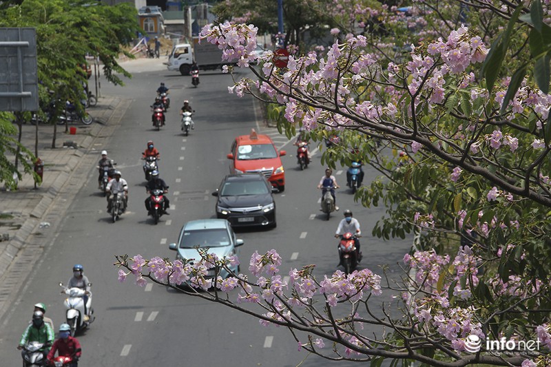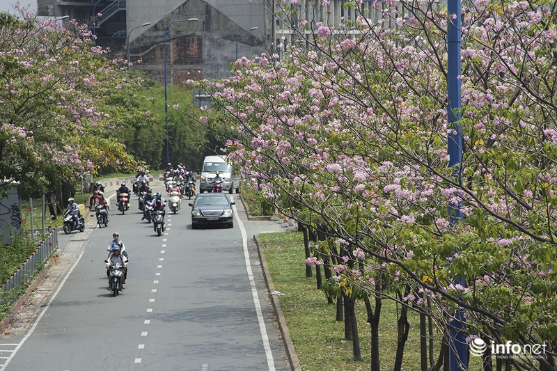 Những ngày đầu tháng Tư, dọc 2 bên các tuyến đường tại trung tâm TP.HCM như Điện Biên Phủ, Võ Văn Kiệt, Võ Thị Sáu, Nguyễn Văn Trỗi... những hàng cây hoa kèn hồng đua nhau khoe sắc khiến TP trở nên thơ mộng hơn |