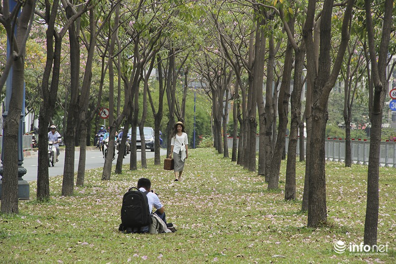 Đây cũng là dịp để các bạn trẻ chụp hình lưu lại những khoảnh khắc dưới hàng cây hoa kèn hồng đang khoe sắc |