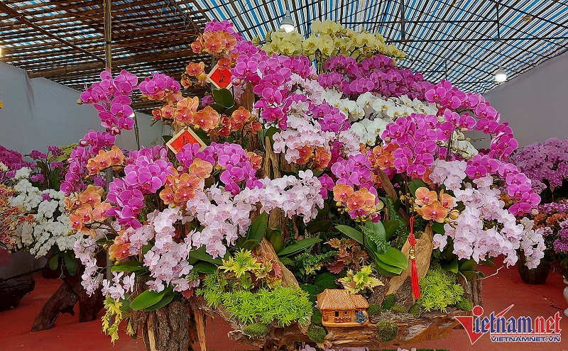 “Số hoa này mình phải đặt trước hơn 3 tháng tại trang trại hoa ở Đà Lạt. Những cây lan được xếp bài trí theo yêu cầu của khách hàng trong các bình gốm hoặc trên thân gỗ lụa. Giá của từng chậu lan phụ thuộc vào số lượng cành hoa lan, tiền công và vật dụng dùng để trang trí”, chị Lương chia sẻ.
