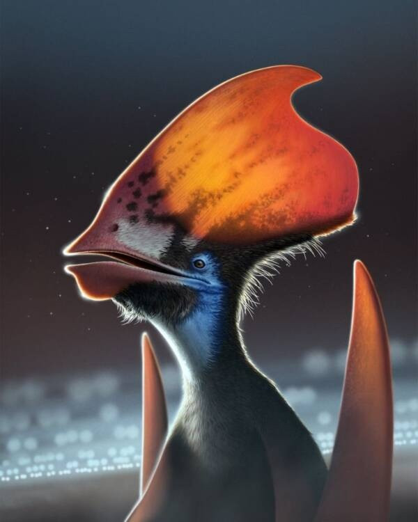 Các nhà nghiên cứu đã nghiên cứu một phần hộp sọ của loài pterosaur và xác định rằng những người anh em họ khủng long có khả năng được bao phủ bởi những sợi lông giống như lông tơ và có một chiếc vương miện đậm bằng lông vũ.