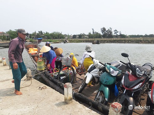 Cập bến đò Vĩnh Tu (xã Quảng Ngạn, huyện Quảng Điền, tỉnh Thừa Thiên - Huế), hành khách lên bờ rồi ra gặp một người phụ nữ để trả phí 10.000 đồng/người và 10.000 đồng/xe máy.