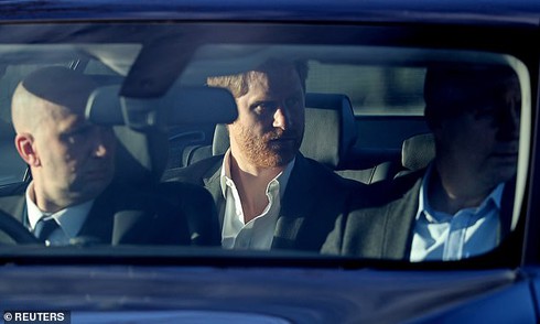 Hoàng tử Harry ngồi ô tô di chuyển ra nhà ga tới London. (Ảnh: Reuters) |