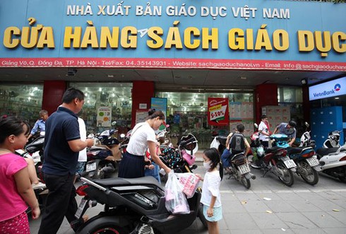 NXBGDVN quy định SGK không được trả lại, bán hết thì lãi, bán ế thì lỗ, các nhà sách phải chịu. Ảnh:Như Ý. |