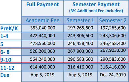 Học phí năm 2019-2020 đối với học sinh lớp 6 là 520 triệu đồng và lớp 10 là hơn 564 triệu đồng nếu đóng cả năm. Nếu đóng theo kỳ hoặc nửa kỳ, mức chênh lệch lần lượt là 3 và 4%.