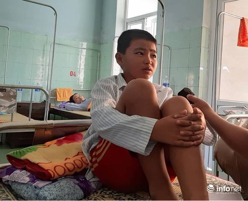 Em Hoàng Long N. kể lại sự việc bị cô giáo ép các bạn trong lớp tát phải nhập viện. |