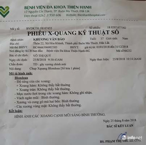 Theo kết luận của bác sĩ, thầy Bảo bị gãy xương chính mũi. |