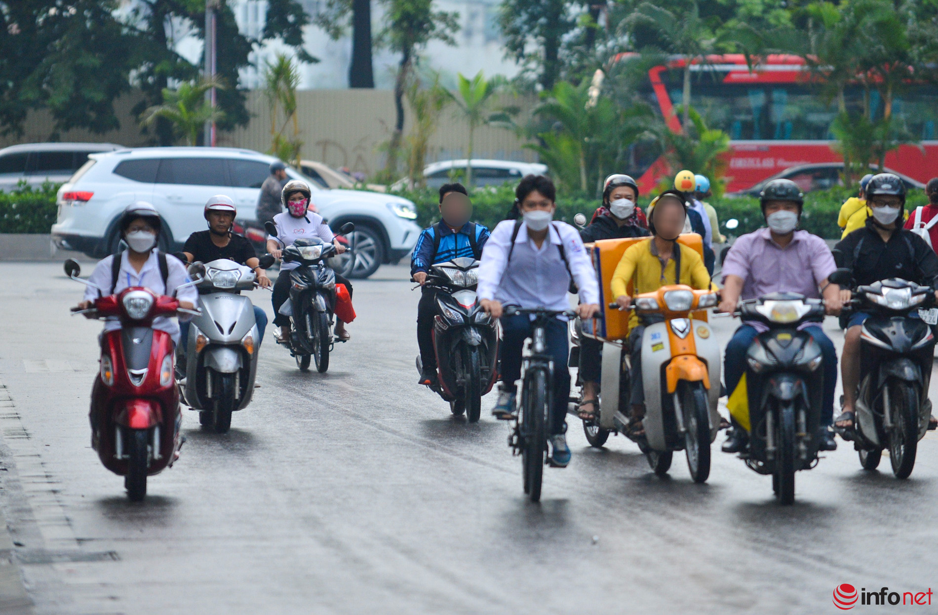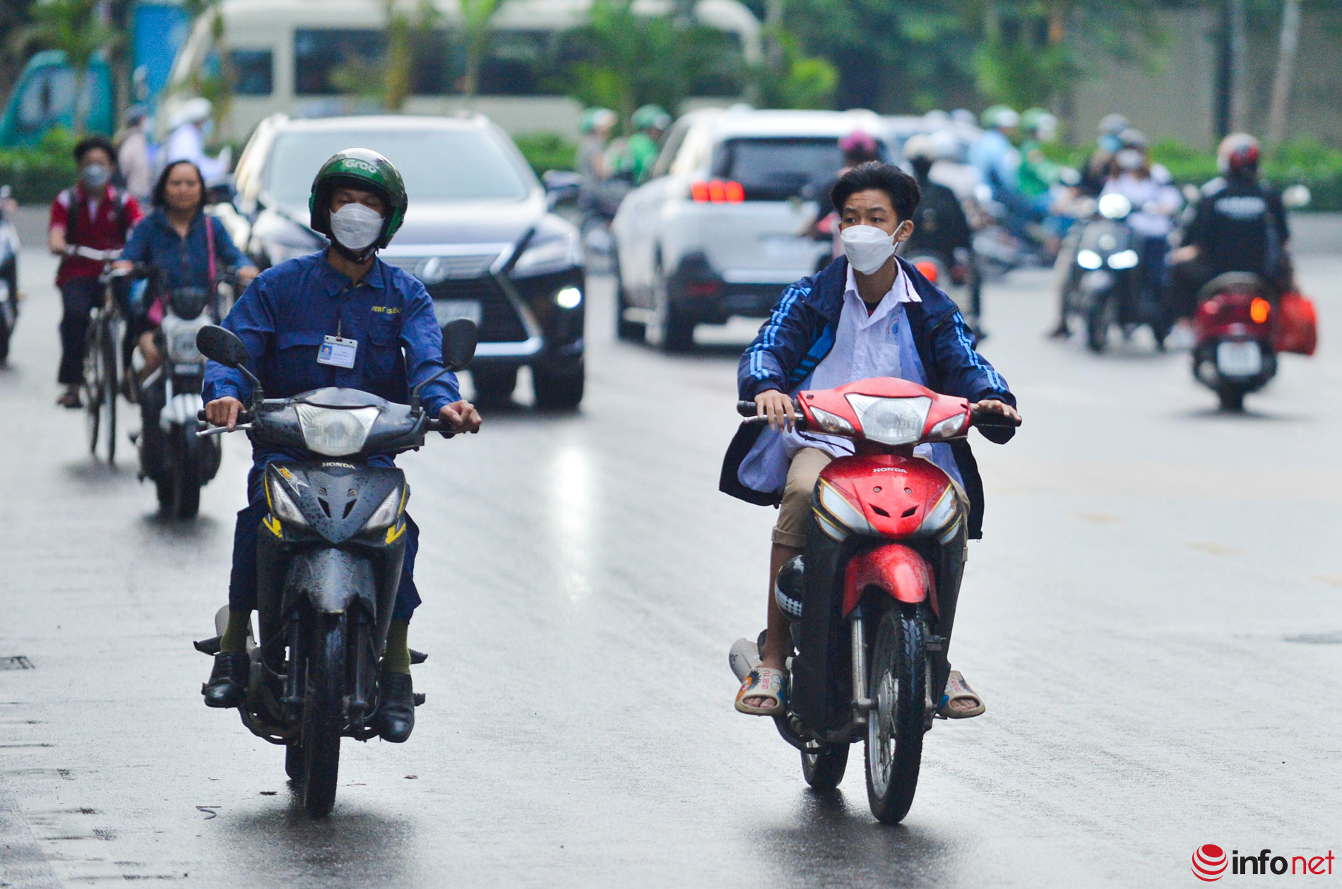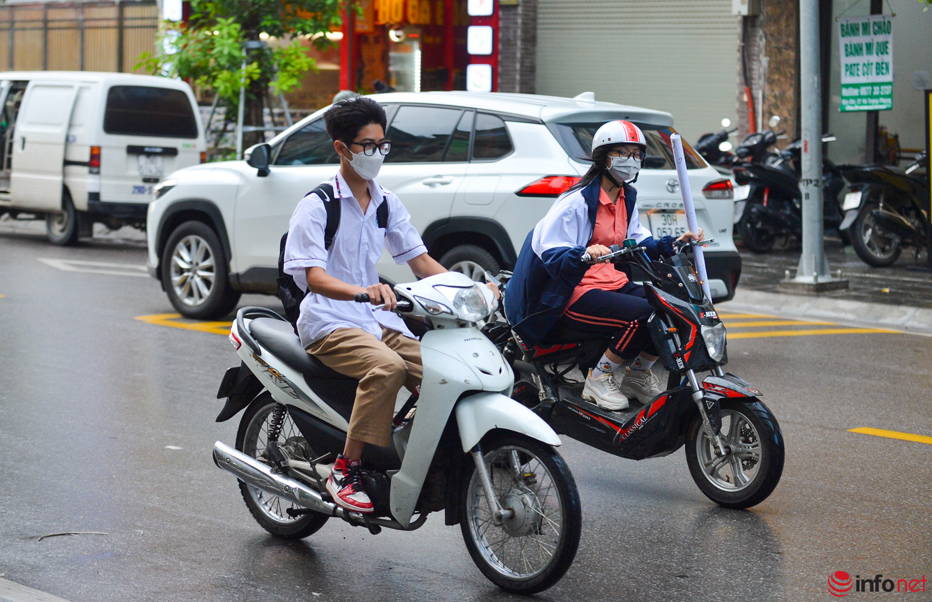 Hà Nội: Nhiều học sinh vẫn không đội mũ bảo hiểm khi điều khiển xe máy, dàn hàng 2, hàng 3
