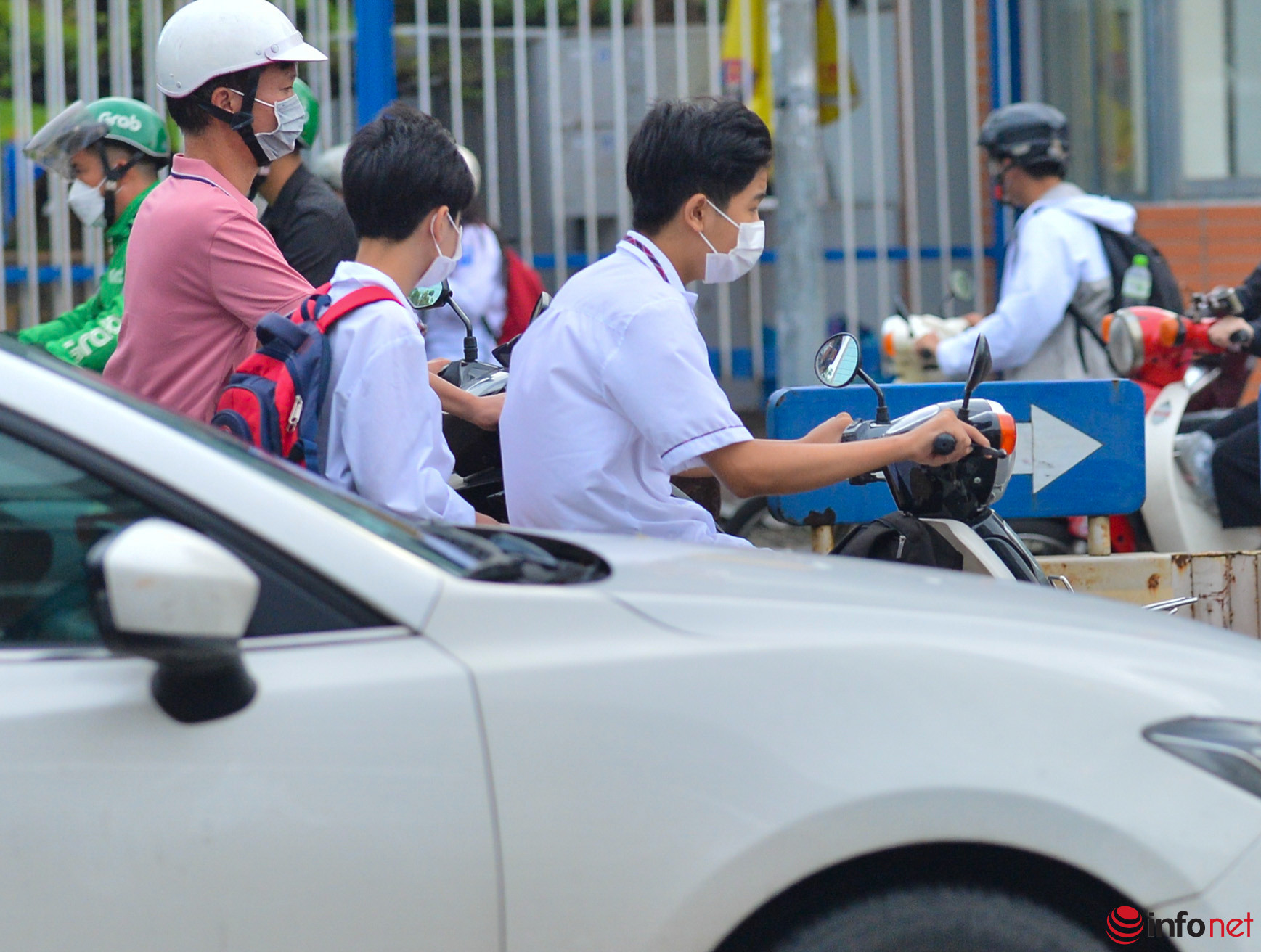 Theo ghi nhận của PV Infonet tại một số trường THPT trên địa bàn TP Hà Nội, không khó để bắt gặp hình ảnh học sinh sau khi tan trường tự lái xe máy ra về. Nhiều em trong số đó không đội mũ bảo hiểm.