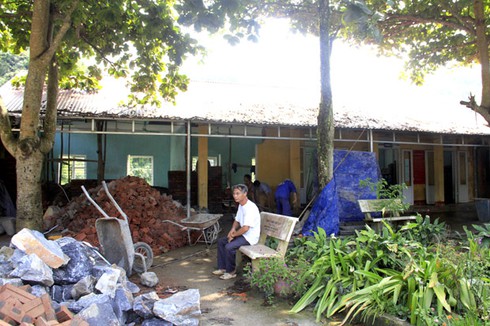 Nhà bán trú hư hỏng nặng đang được gấp rút sửa chữa. |
