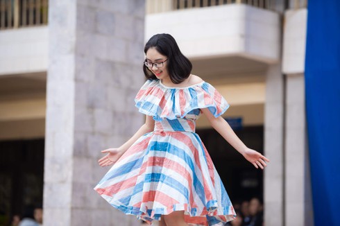 Tuy nhiên, học sinh ngày nay mỗi lúc càng sáng tạo hơn với những thiết kế cực độc đáo, táo bạo. Thực tế là các bộ trang phục tái chế đều được chăm chút rất công phu cả màu sắc lẫn đường nét, thậm chí còn lấy ý tưởng đa dạng từ phong cách hoàng gia quý tộc sang chảnh. Chưa hết, thần thái trình diễn tự tin, bản lĩnh của các model học đường vẫn cứ xuất sắc y như đang tham dự Vietnam Fashion Week.