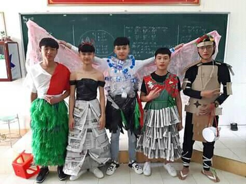 Học sinh trình diễn trang phục tái chế khiến dân mạng "ngả mũ"