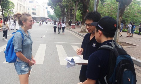 Nhóm của Tùng Khánh lên Hồ Gươm phỏng vấn nhiều du khách để tìm ra cách tiếp cận sáng tạo với môn Lịch sử |