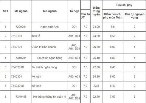Theo đó, ngành có điểm chuẩn cao nhất của Học viện Tài chính là Quản trị kinh doanh lấy 26.80, ngành thấp nhất là ngành hệ thống thông tin quản lý lấy 22,2 điểm.