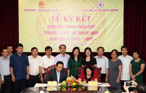 Lễ ký kết chương trình phối hợp trong công tác nhân đạo giai đoạn 2017 - 2020 giữa Bộ Lao động - Thương binh và Xã hội và Trung ương Hội Chữ thập đỏ Việt Nam. |