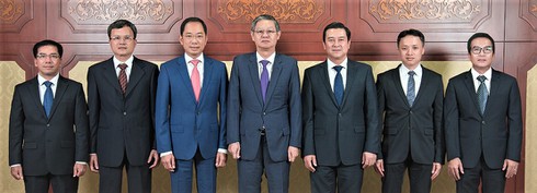 Chủ tịch HĐQT Nguyễn Hoàng Tuấn (giữa) và các thành viên HĐQT PVOIL. |