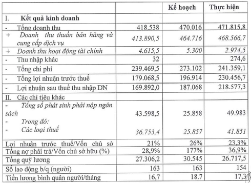 Kết quả kinh doanh năm 2018củaViwasupco. Nguồn: Báo cáo thường niên của công ty. |