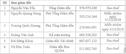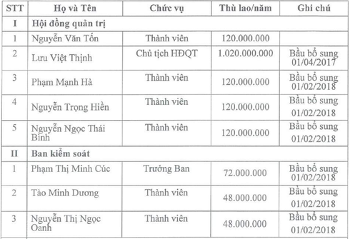 Thù lao của HĐQT, BKS và Ban TGĐ. Nguồn: Báo cáo thường niên công ty. |