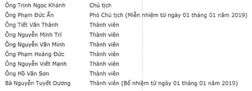 Sau khi miễn nhiệm Phó chủ tịch HĐTV Phạm Đức Ấn kể từ 01/01/2019 để điều động làm Chánh văn phòng NHNN, Hội đồng thành viên (HĐTV) Agribank hiện không có Phó chủ tịch mà chỉ có Chủ tịch HĐTV và 7 thành viên HĐTV.