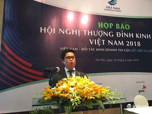 Chủ tịch VCCI Vũ Tiến Lộc chủ trì buổi họp báo giới thiệu về Hội nghị Thượng đỉnh Kinh doanh Việt Nam 2018 |