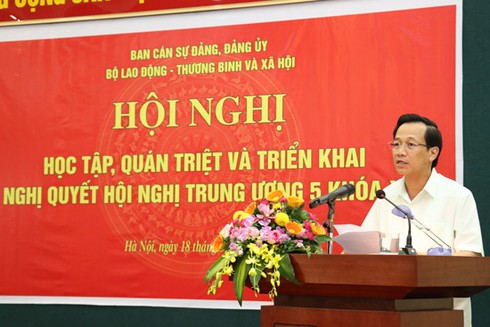Bộ trưởng cho rằng, Hội nghị nhằm phổ biến quán triệt các Nghị quyết của Hội nghị Trung ương 5 khóa 12, để từng cán bộ chủ chốt nhận thức sâu sắc mục đích ý nghĩa tầm quan trọng các nội dung cơ bản của văn kiện của Đảng từ đó tạo sự thống nhất cao về nhận thức, hành động, đề cao trách nhiệm gương mẫu tự giác thực hiện. Đồng thời trên cương vị của mình chỉ đạo thực hiện tốt Nghị quyết trong lĩnh vực được giao nhất là trong việc nghiên cứu, xây dựng các chính sách pháp luật nhằm thể chế hóa các chính sách được đề ra trong Nghị quyết liên quan đến lĩnh vực lao động, người có công và an sinh xã hội.
