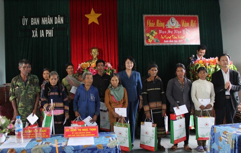 Phó chủ tịch nước Đặng Thị Ngọc Thịnh về thăm xã Ia Phí vào đầu năm 2017. Ảnh: Ngọc Trân |